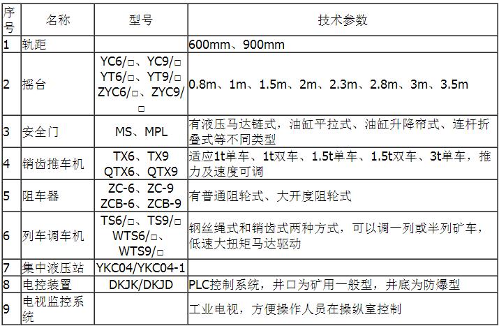 立井操車設(shè)備的主要設(shè)備包括進(jìn)罐推車機(jī)、搖臺、阻車器、安全門、列車調(diào)車機(jī)、集中液壓站、電控裝置、電視監(jiān)控系統(tǒng)等。根據(jù)不同的系統(tǒng)布置方式和用戶要求有不同的組合。